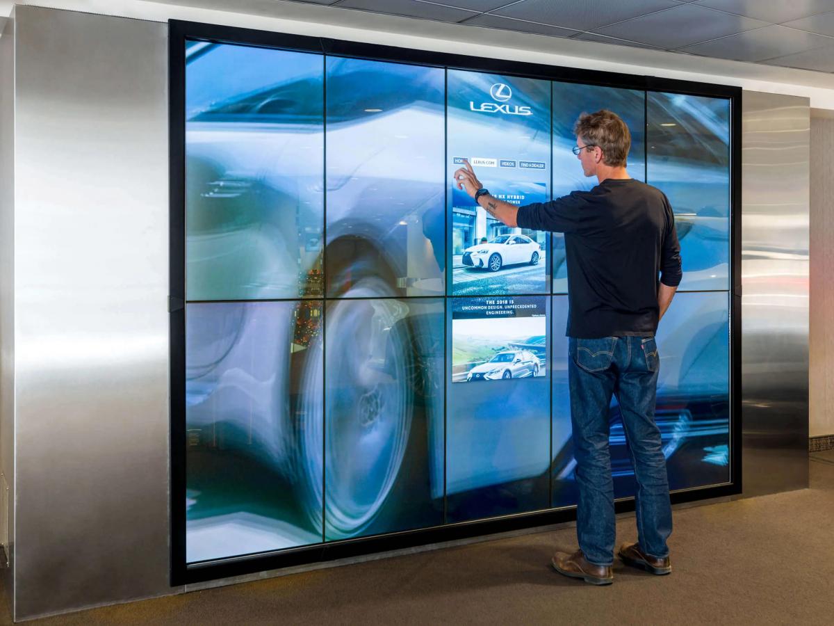 Content content on the screens should be interesting and attractive to your audience, such as test drive videos, photos of cars from different angles, presentations of new models, etc.