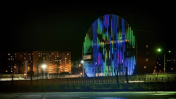 The unique Novouralsk Innovation Cultural Centre building is now adorned by a LED media facade