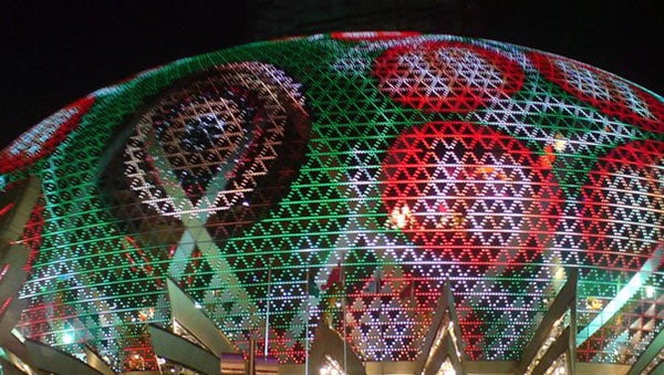 Eight floors are lighted up with millions of lights 24/7 due to high-quality LED facade of staggering dimensions: its height is 56 meters and width as much as 189 meters! Special clusters were designed for this building, each containing 20 red, green and blue LEDs. 59 thousand of these clusters has been used in "the egg" totally.