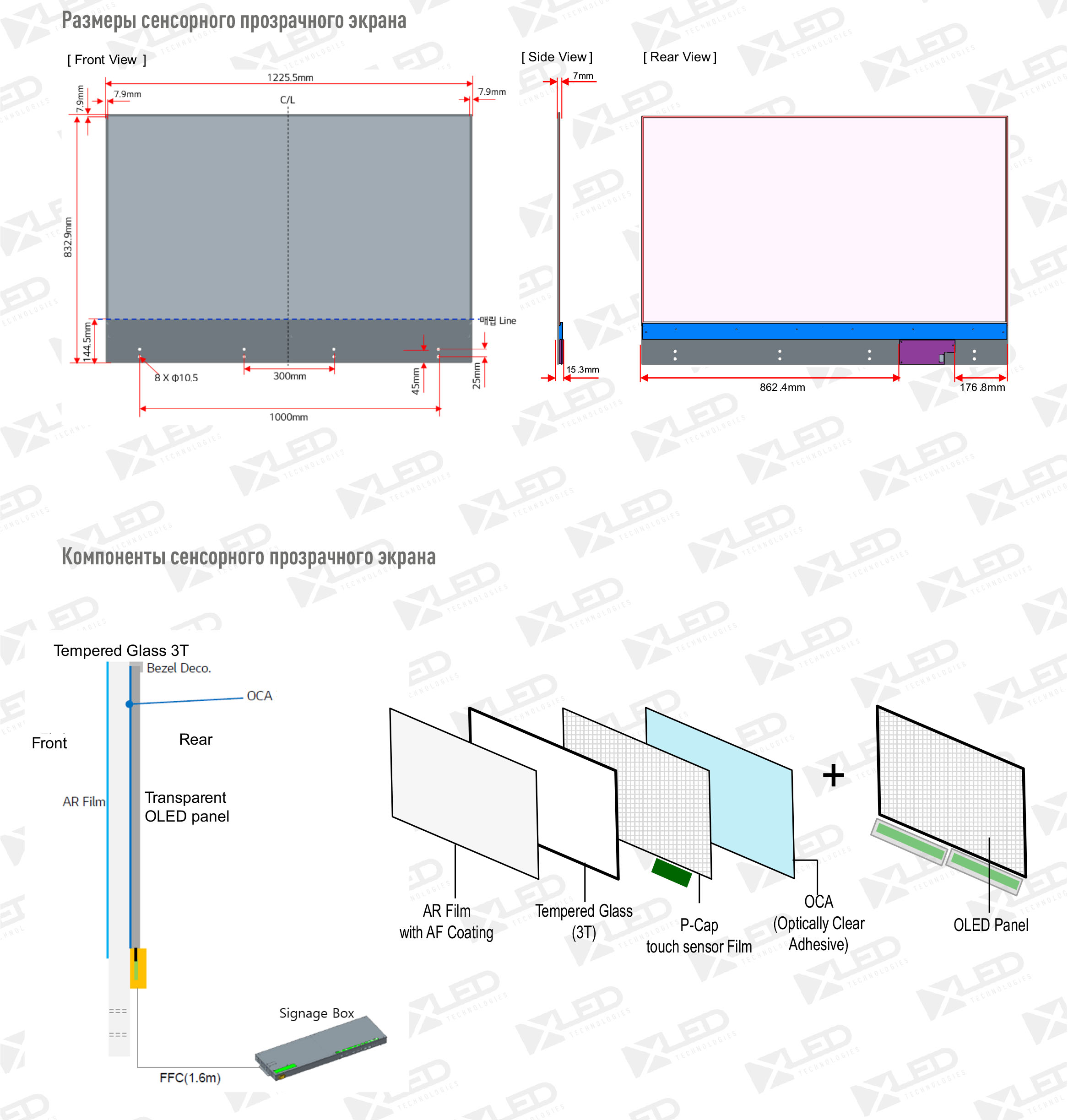 | 1 | Вид панели | Прозрачный OLED сенсорный дисплей |