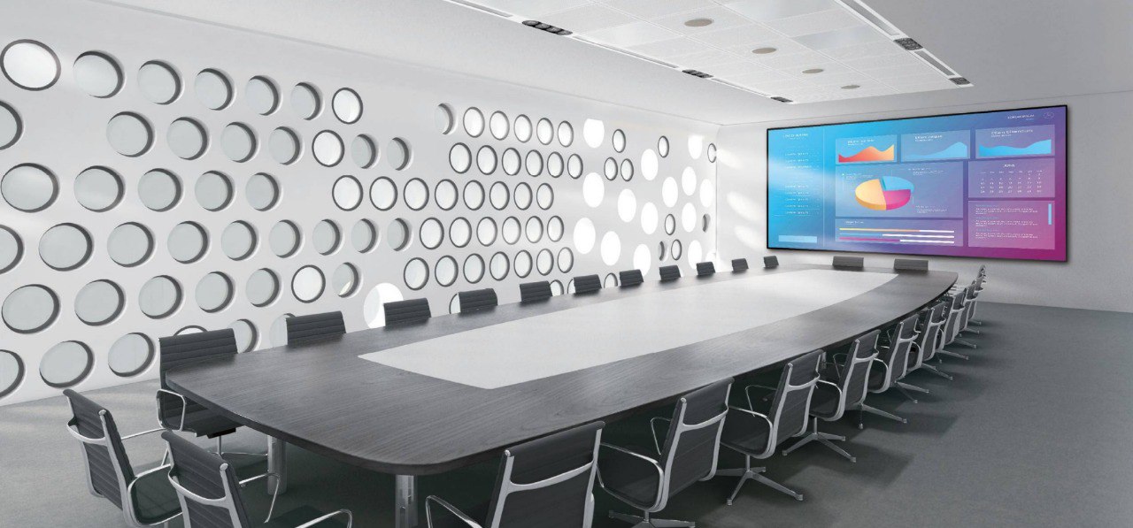 Использование строгих геометрических линий в качестве основного элемента дизайна подчеркивает компактность конструктива видеостены, отображая информацию без потери деталей.